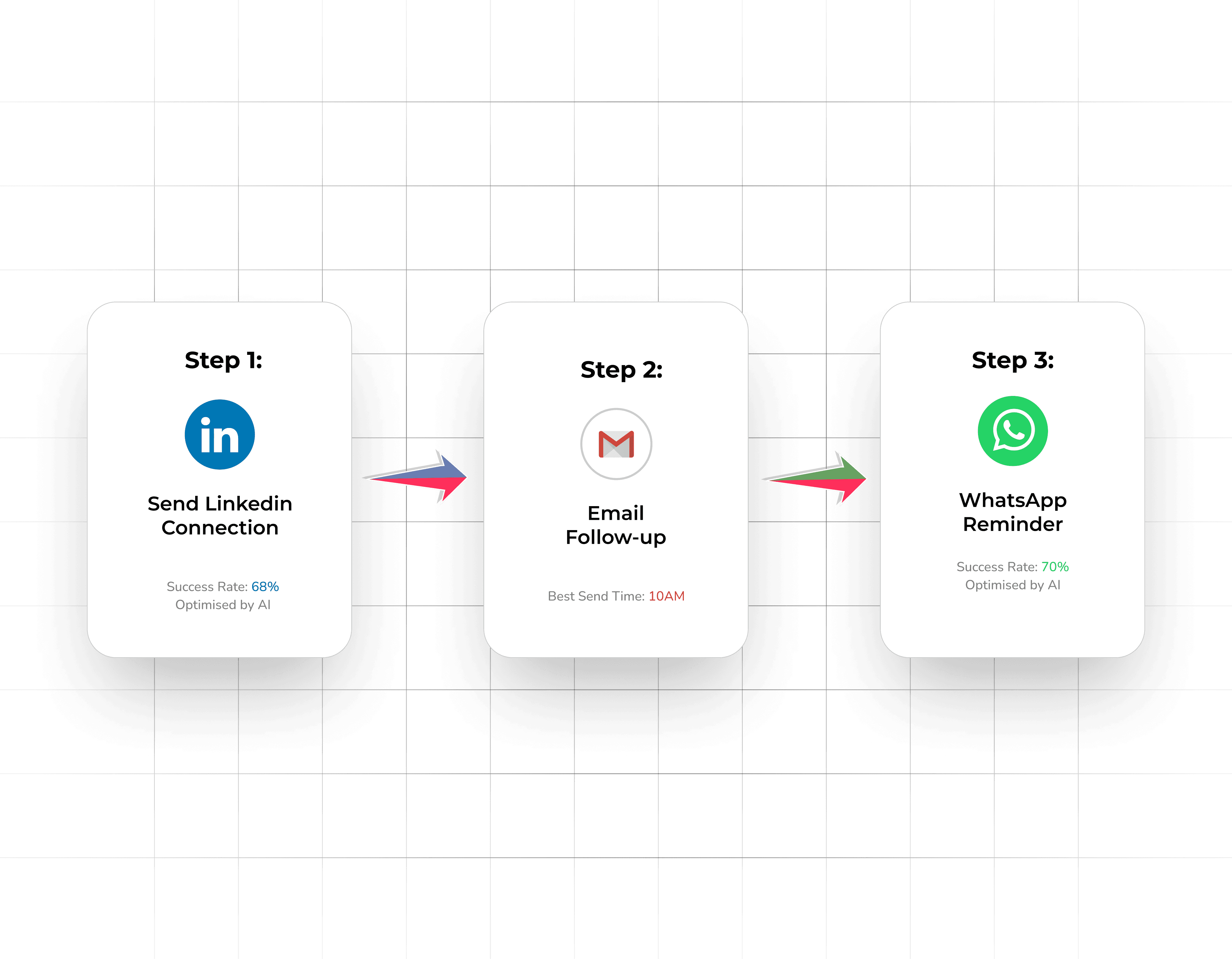 Seamlessly switch between LinkedIn, email, and WhatsApp campaigns - all tied to one simple workflow.